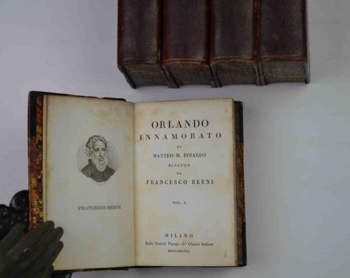 Cinque volumi di cm. 10,5, pp. 1.500 ca. complessive. Bel ritratto del Berni inciso all'antiporta del primo volume. Solida leg. coeva in mezza pelle con punte, dorsi lisci con titoli in oro. Piatti, sguardie e tagli marmorizzati. Minimi segni d'uso alle cerniere, ma ben conservato. Graziosa edizione di piccolo formato.