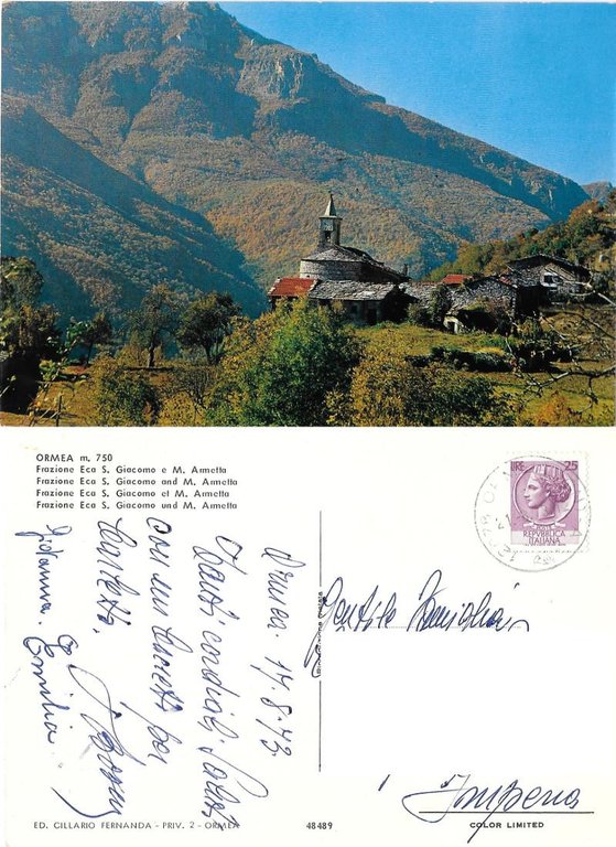Ormea. Frazione Eca S. Giacomo e monte Armetta. Viaggiata 1973