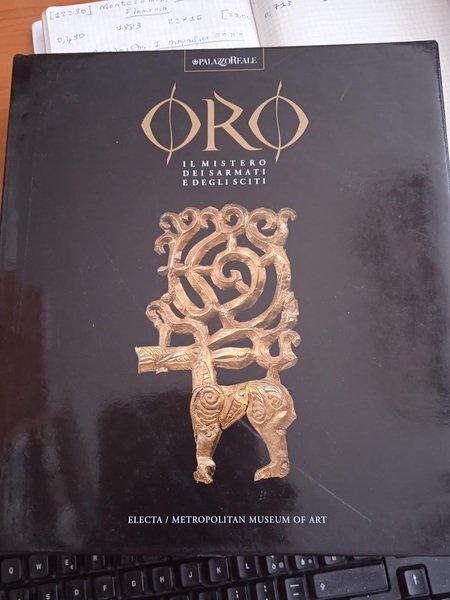 PRIMA EDIZIONE edito in occasione della mostra allestita presso Palazzo Reale di Milano dal 15 marzo al 15 luglio 2001 curata da Ermanno Arslan Pubblicazione realizzata in margine alla mostra dove vennero presentati i risultati degli scavi effettuati fra il 1986 e il 1990 presso il sito archeologico di Filippovka nella Russia Meridionale, dove è stato portato alla luce un tesoro inestimabile: duecento oggetti d'oro che fanno addirittura presupporre l'esistenza di un popolo diverso dagli Sciti e finora sconosciuto. Accanto a questi ritrovamenti, il corpo principale e assolutamente inedito della mostra, sono esposti anche cento famosi reperti d'arte nomade che costituiscono il cuore della leggendaria Stanza d'Oro dell'Ermitage. Cartonato con sovraccoperta illustrata. Pp. 259. Ottime condizioni.