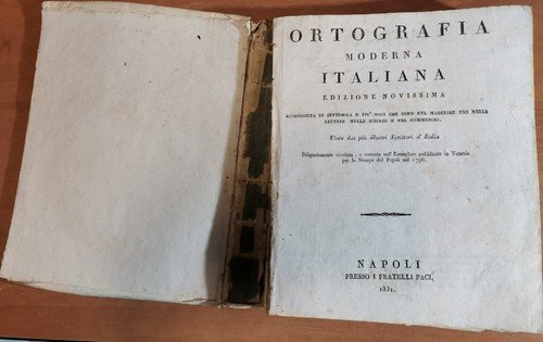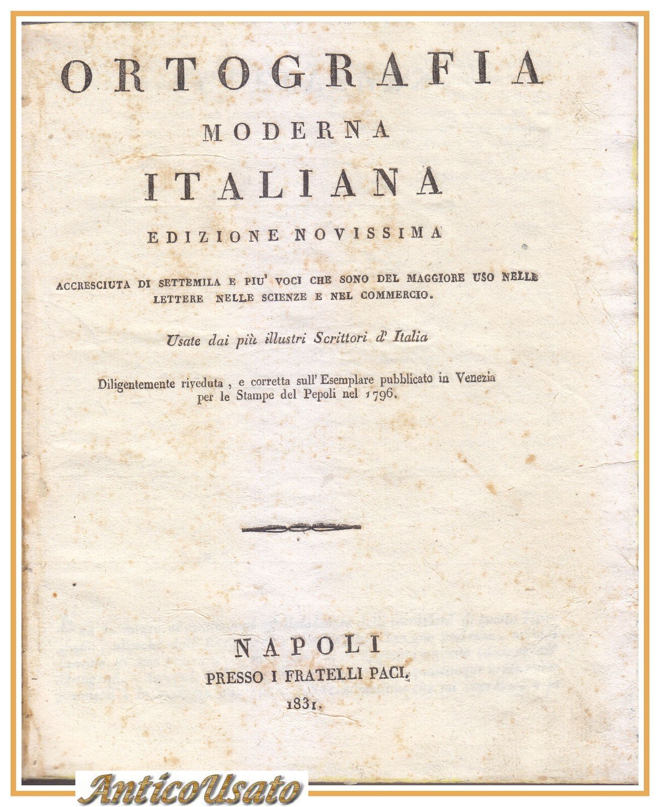 ORTOGRAFIA MODERNA ITALIANA 1831 Fratelli Paci libro antico voci lingua scritto