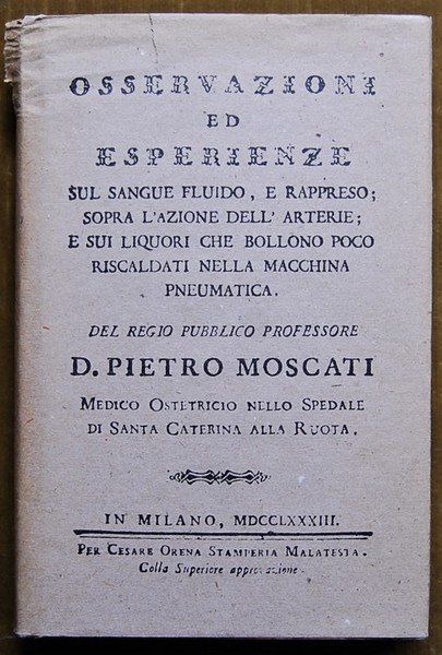 Ars Medica, 1992. In-8, cartonato editoriale, sovracoperta, pp. 132. Ristampa anastatica dell'edizione del 1783. Strappi alla sovracoperta, pagine interne in ottimo stato.