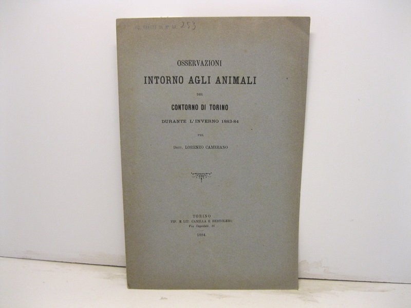 Osservazioni intorno agli animali del contorno di Torino durante l'inverno 1883-84