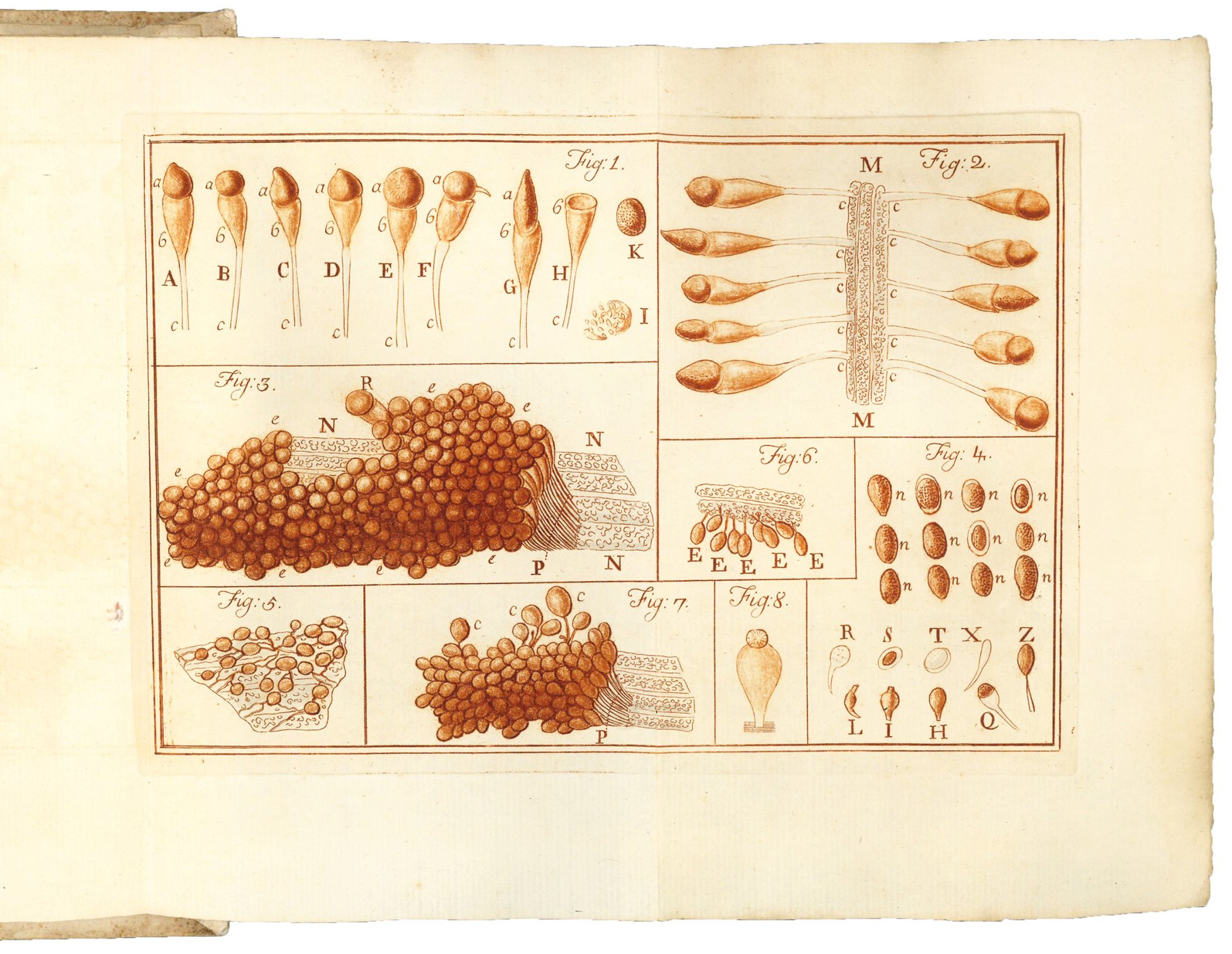 "In 1766 Fontana demonstrated that the blight which had devastated the Tuscun countryside was caused by parasitic plants that feed on grain and that reproduce by means of spores" (D.S.B., V, p. 56).