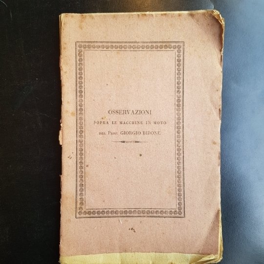 Osservazioni sopra le macchine in moto di Giorgio Bidone professore d'idraulica teorica e sperimentale nella Regia Università e membro della Reale Accademia delle Scienze di Torino; socio attuale della Società Italiana delle Scienze residente in Modena