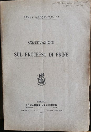 OSSERVAZIONI SUL PROCESSO DI FRINE di Luigi Cantarelli 1885 Loescher libro antic