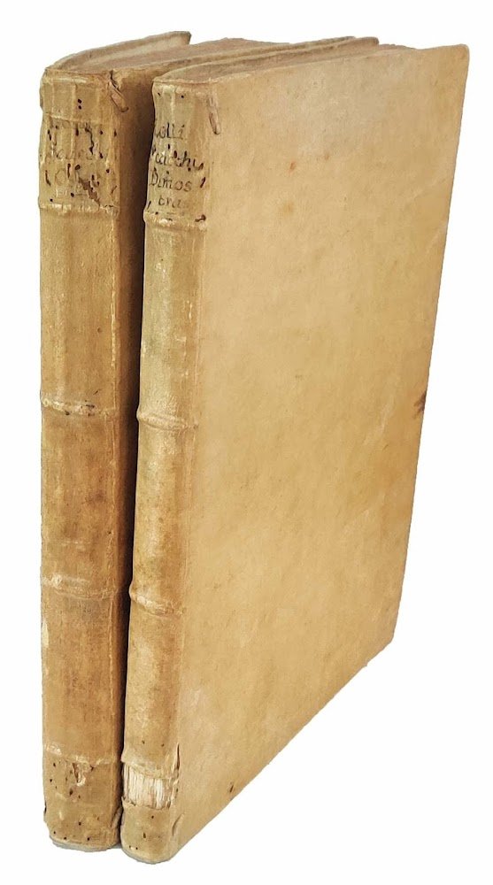 Two volumes, folio (282x204 mm). [4], 632 pp. Woodcut ornament on title page. Woodcut initial, head- and tailpieces. Volume two opens with a section title at p. [369]: Dimostrazioni pratiche che riguardano il finimento del giuoco degli scacchi, con in fine una centuria delle più scelte sottigliezze, e partiti pratici proposti da varj giuocatori antichi, e moderni. Contemporary stiff vellum, spine with four raised bands and inked title, red sprinkled edges (lacking small portion of the spine in volume two). Some foxing and staining, stronger towards the end of volume two, all in all a good copy.