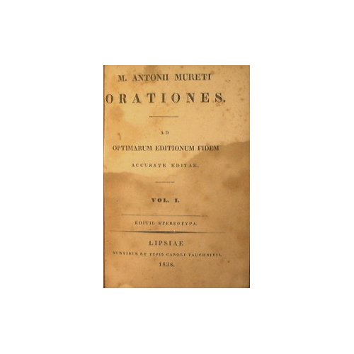 in 16° - pp.XVIII, 276 + XII, 268 - Mezza pelle - 2 volumi rilegati in uno - Testo in latino - Editio stereotypa. - Dorso in parte staccato, diffuse ingialliture - 'Significativo documento del tardo umanesimo sono le Orazioni dell'umanista francese Marc-Antoine Muret (1526-1585), raccolte dapprima nel 1571 e più volte ristampate nelle opere dell'autore quale capolavoro di forbitissimo stilista' Cfr. Dizionario letterario Bompiani delle Opere, vol. 5