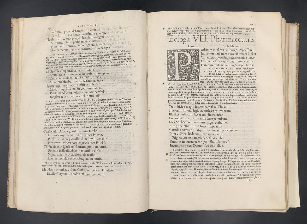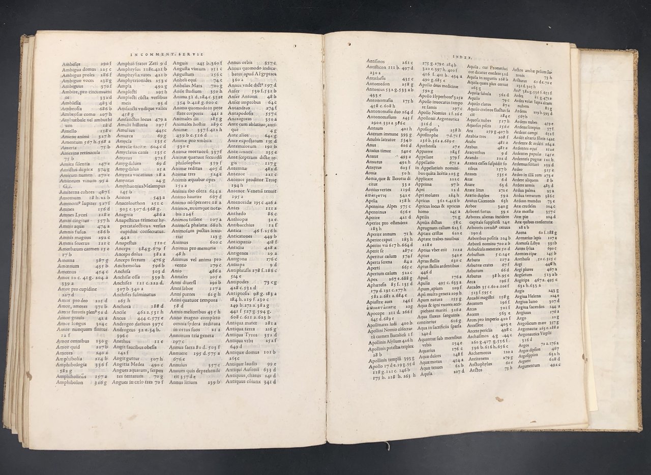 P. Virgilii Maronis OPERA Mauri Servii Honorati grammatici in eadem commentarii, ex antiquis exemplaribus suae integritati restituti. Index eorum quae à Servio explicantur, ita copiosus ut vel Dictionarii instar esse possit. Esemplare MUTILO.
