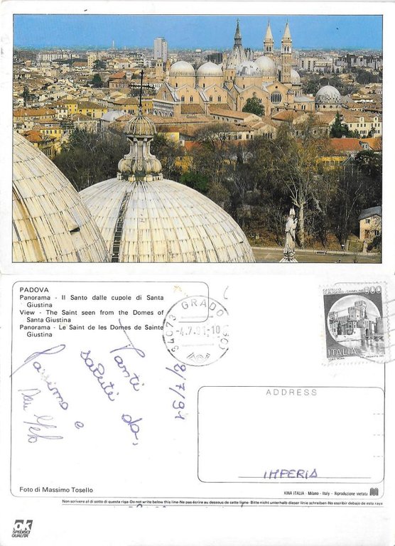 Padova. Il Santo dalle cupole di Santa Giustina. Viaggiata 1991