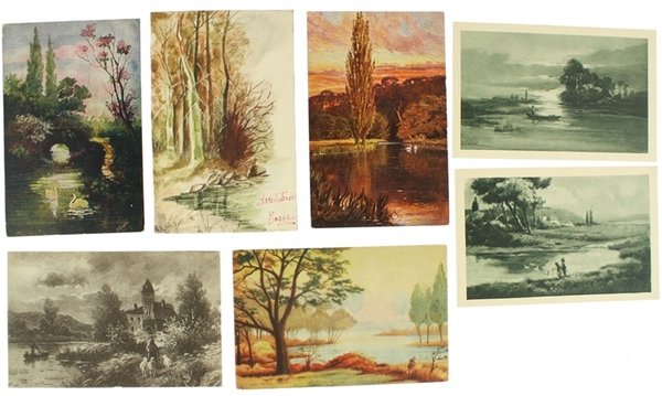 PAESAGGI LACUSTRI: SETTE CARTOLINE ILLUSTRATE ANTICHE.