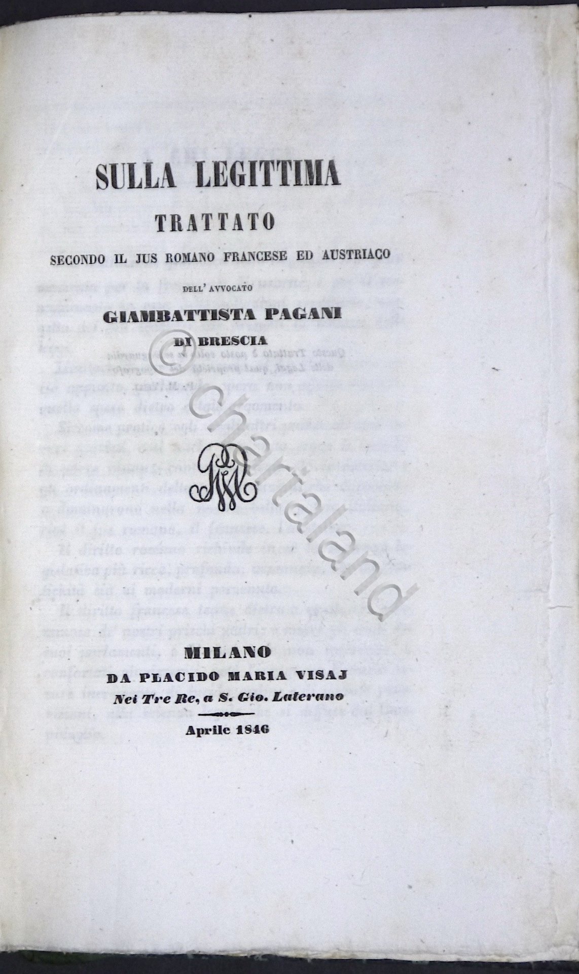 Sulla legittima - Trattato secondo il jus romano francese ed austriaco dell'avvocato Giambattista Pagani di Brescia - ed. 1846