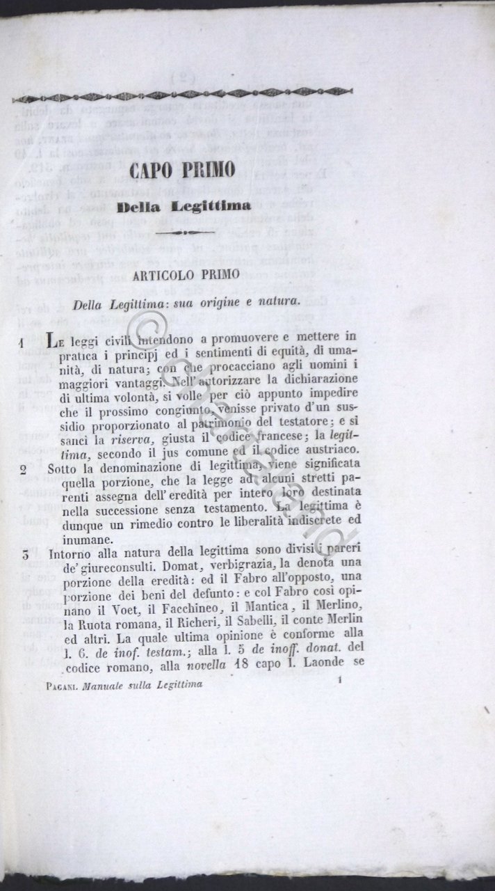 Pagani - Sulla legittima: trattato secondo jus romano francese e austriaco 1846