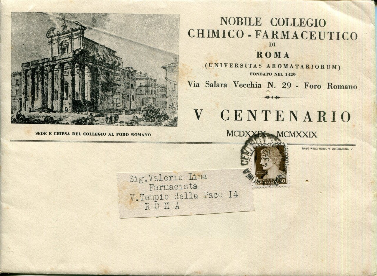 Pagine storiche sul nobile collegio chimico farmaceutico (Universitas aromatariorum) e sulla farmacia romana : da Papa Martino 5., 1429, ai giorni nostri