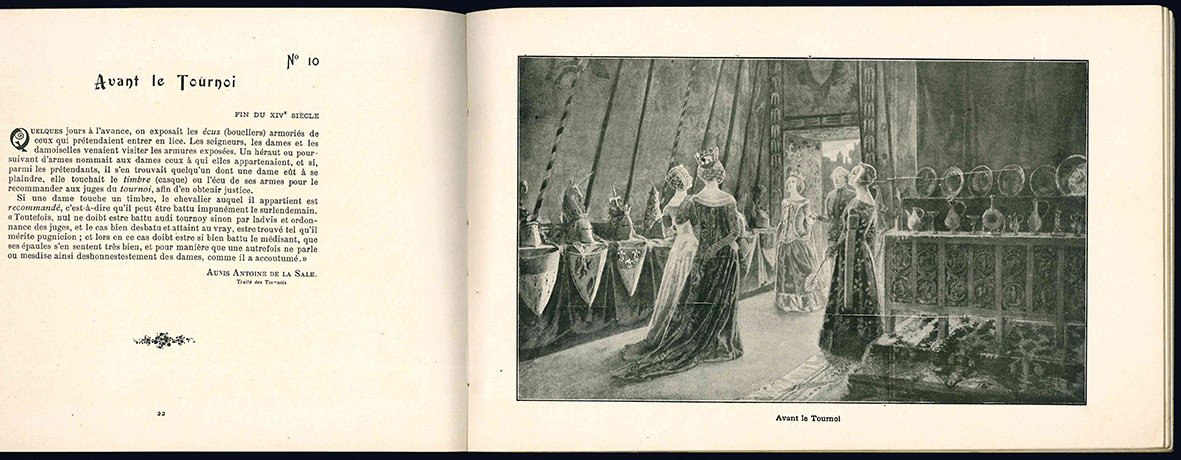In 8vo ad album (mm 155x242); pp. [8], 64, [8], con numerose illustrazioni in bianco e nero nel testo. Per ogni epoca storica si ha una scena che riproduce non solo gli abiti del tempo, ma anche le architetture e i mobili. Copertina editoriale stampata.
