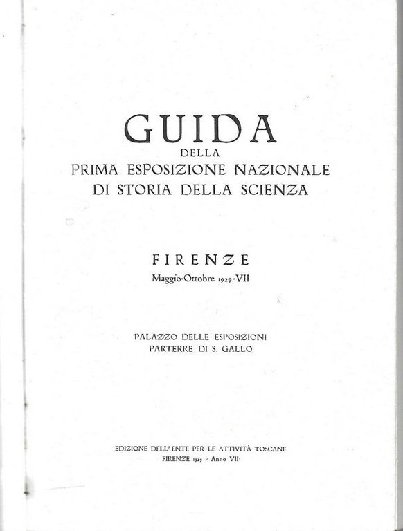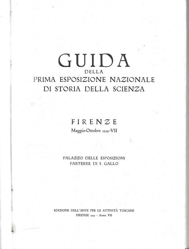 - Guida Della Prima Esposizione Naz. Di Storia Della Sciena .