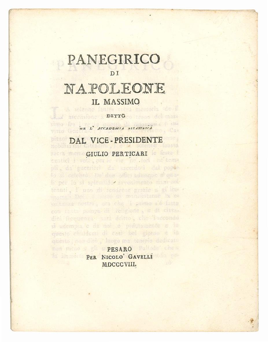 Panegirico di Napoleone il massimo detto ne L'Accademia Pisaurica dal Vice-Presidente Giulio Perticari