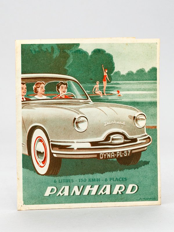 Dépliant publicitaire Panhard, s.d. [ circa 1957 ], 12.75 x 14.7 cm fermé et 25.5 x 14.7 ouvert Etat très satisfaisant (petit manque à la jonction des pliures, bon état par ailleurs) pour ce beau dépliant proposant un écorché de la Dyna 57