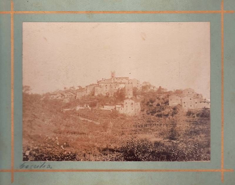 Fotografia originale all'albumina di cm 21,5x16, montata su cartoncino cm. 35x24,5 filettato in oro. Alla base scritta a lapis il nome del paese 'Coccilia'