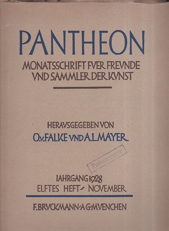 Pantheon. Monatsschrift fuer Freunde und Sammler der Kunst. Iahrgang 1928. Elftes Heft - November