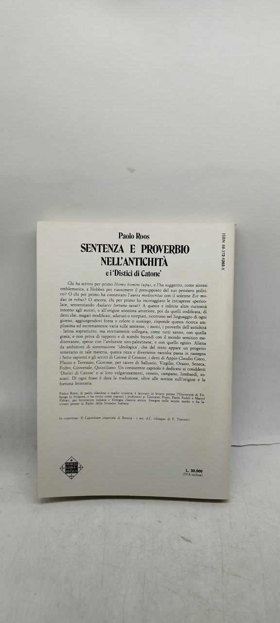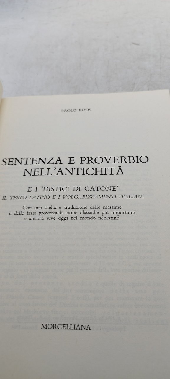 paolo roos sentenza e proverbio nell'antichità e i distici di catone . , 1984 italiano, pp.251 ^^^