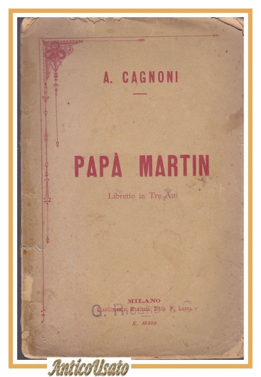 PAPA' MARTIN di A. Cagnoni libretto d'opera di Ghislanzoni 1887 antico lirica