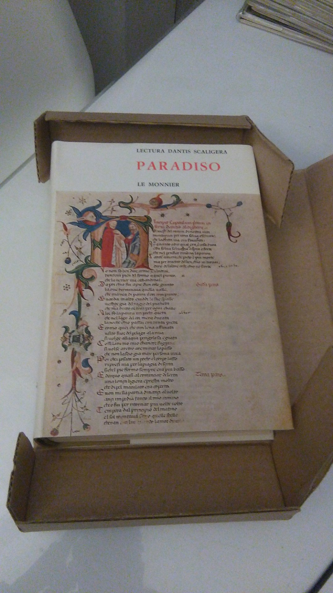 Copertina rigida con sovraccopertina e cofanetto. Ottime condizioni. Lectura dantis scaligera
