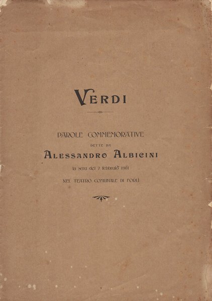 Parole commemorative dette da Antonio Albicini la sera del 7 Febbraio 1901 nel Teatro Comunale di Forlì