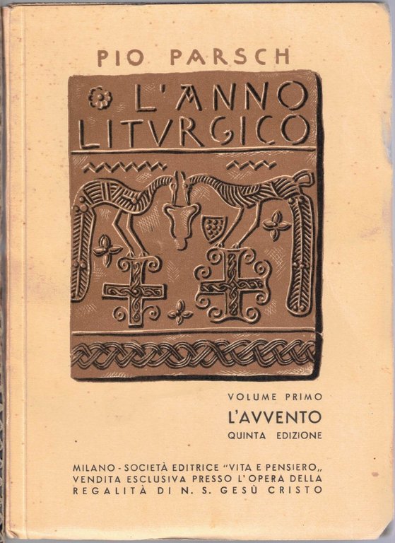 Pio Parsch, L’anno liturgico, con prefazione di Fr. Agostino Gemelli o.f.m., Soc. Ed. Vita e Pensiero, Milano 1949-1950, 4 voll. (voll. I, II, V, VI), pp. totali XII, 1381, ill. b.n., cm 18, br. ed. Il lotto comprende i volumi I, II, V, VI (per un totale di 4 voll.) dell’opera L’anno liturgico di Pio Parsch. Dettaglio lotto. Volume I: L’Avvento, 1949, quinta ed., pp. XII, 246. Volume II: Tempo di Natale, 1949, quinta ed., pp. 315. Volume V: Tempo di Pentecoste. Dalla domenica I alla XV dopo Pentecoste, 1950, quinta ed., pp. 436. Volume VI: Dalla domenica XVI dopo Pentecoste alla fine dell’anno liturgico, 1949,quinta ed., pp. 384. Firma d’appartenenza al frontespizio di ciascun volume. Leggere tracce d’uso, minime fioriture alle brossure, ordinaria brunitura della carta, per il resto e nel complesso esemplari ben conservati. Buon insieme.