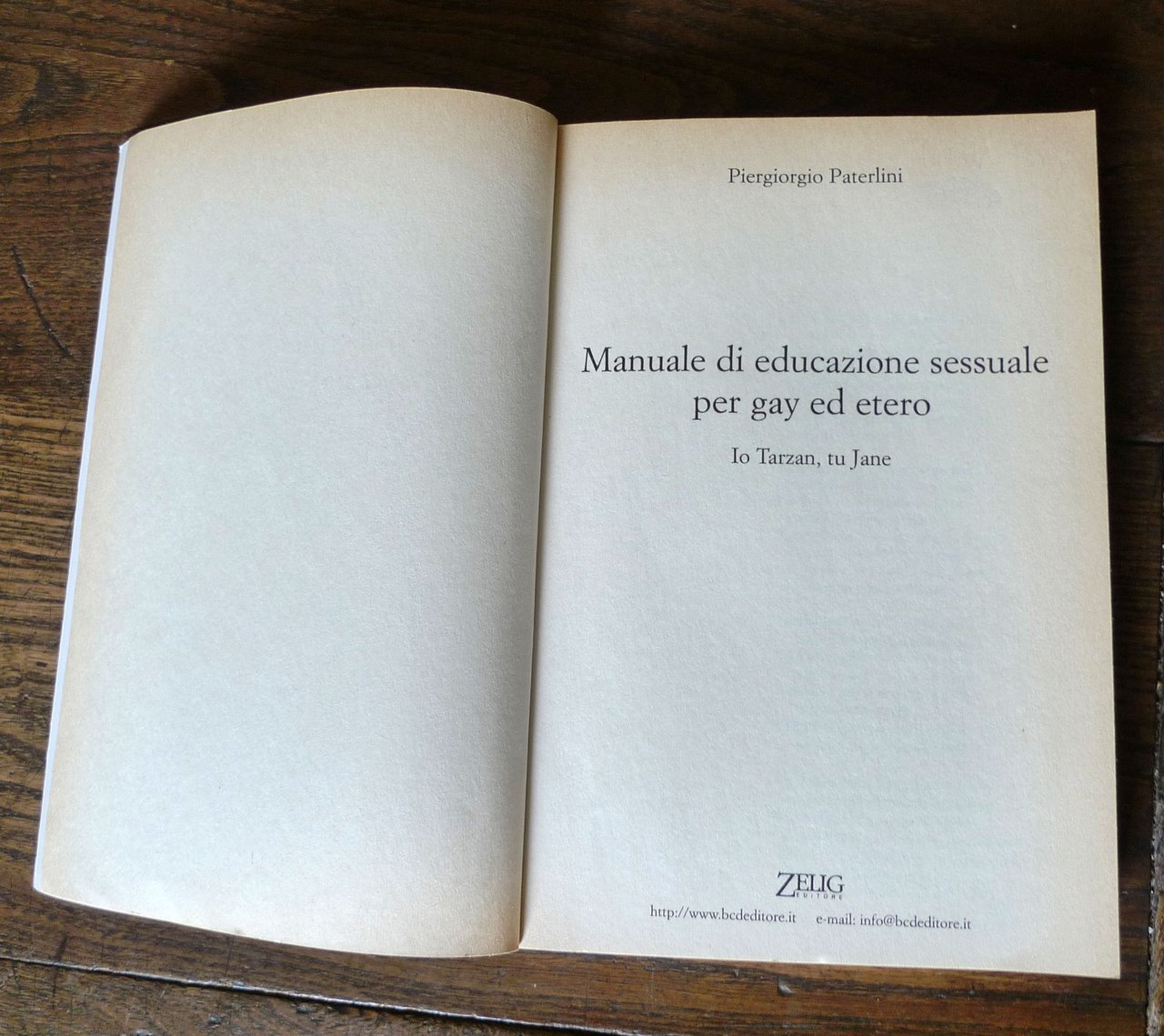 Piergiorgio Paterlini,MANUALE DI EDUCAZIONE SESSUALEPER GAY ED ETERO.Io Tarzan, tu Jane.Zelig Editore, Milano 2003,brossura, 21x14,5 cm., pp.177,collana FUTURA,ISBN: 88-88809-17-1,peso: g.300cod.9517CONDIZIONI DEL LIBRO: buone,imperfezioni alla copertina,pagine ingiallite,poche sottolineature a matita