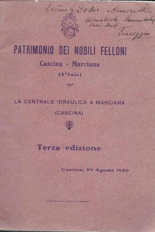 Patrimonio dei Nobili Felloni Cascina = Marcian 29 - Agosto 1926.