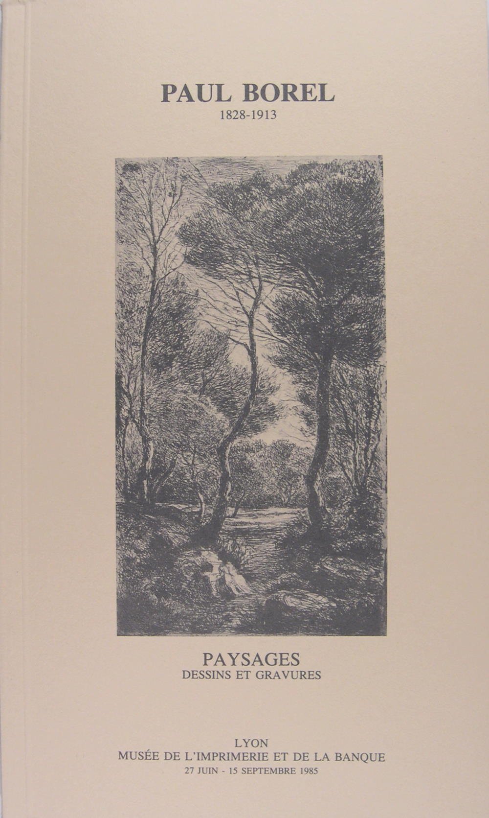 Musée de l’Imprimerie et de la Banque, Lyon, 1985. In/8 oblong broché, couverture illustrée, illustrations en noir in-texte, 19 ff. P. Borel (1828-1913) peintre et graveur lyonnais auquel le Musée avait consacré une exposition du 27 Juin au 15 Septembre 1985 privilégiant ses oeuvres consacrées aux paysages.