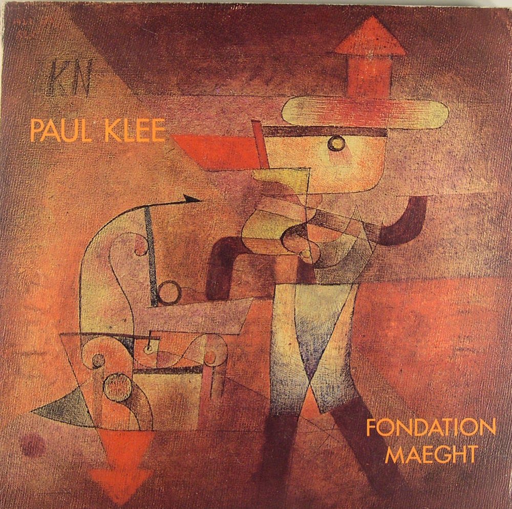 Fondation Maeght, Catalogue d'exposition, 1977. In/8 carré (21 x 21 cm), 190 pages, illustrations en noir et en couleurs. Catalogue d'exposition. In fine, listes des oeuvres peintes, dessins & gravures exposées, documents. Biographie, principales expositions, écrits de Paul Klee, ouvrages illustrés par Klee, bibliographies.