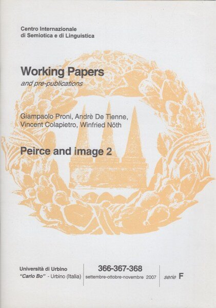 In-8 (Cm 24 x 17), pp. 57 brossura editoriale. Collana Documenti di lavoro e pre-pubblicazioni 366-367-368 Settembre-Ottobre-Novembre 2007 serie F (Semiotiche visive e audio-visive). Testi in Inglese e Italiano. OTTIMO - L'icona nella teoria di Pierce come condizione della conoscenza e del segno - Iconoscopy between Phaneroscopy and Semiotics - Processi di costruzione dell'immagine e di immaginazione: verso una chiarificazione pragmatica dell'immagine - Representations of imaginary, nonexistent, or nonfigurative objects