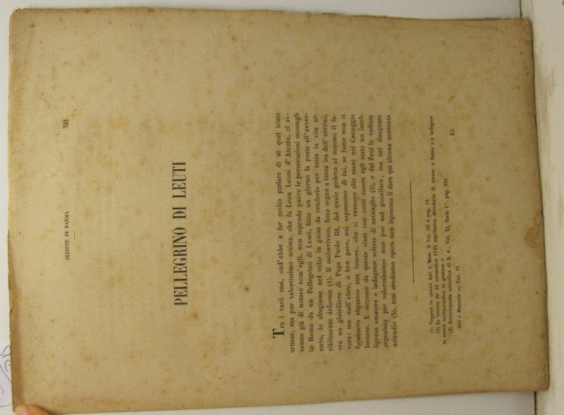 In 4, pp. 341-350. Qualche taglietto ai margg. delle cc. Esemplare privo di legatura all'origine. Estratto dagli Atti e Memorie della Deputazione e Storia Patria Province Modenesi e Parmensi. Breve profilo biografico del gioielliere tedesco Pellegrino di Leuti.