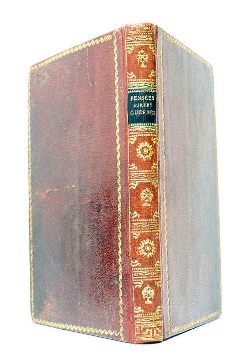 159 pages. 1 feuillet. (manque au moins 1 feuillet). (20x13,5 Cm). Plein maroquin rouge. Dos lisse doré. Filet doré sur les plats. Coins et coiffes un peu émoussés. Plats frottés. Ouvrage rare. La paix perpétuelle passe par une coalition contre l'Angleterre. L'auteur est resté anonyme. Il nous apprend qu'il a "longtemps gémi dans cachots de la Bastille . pour avoir écrit contre quelques opérations financières de Monsieur Necker." Ex-libris Marcel Dunan, historien (1885-1978), professeur d'histoire de la Révolution et de l'Empire à la Sorbonne de 1946 à 1955, directeur de l'Institut d'Histoire de la révolution française, président de l'institut Napoléon de 1947 à 1974. Exemplaire bien conservé. Quelques rousseurs éparses.