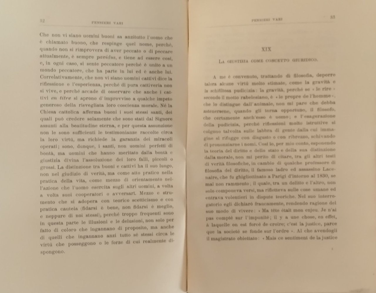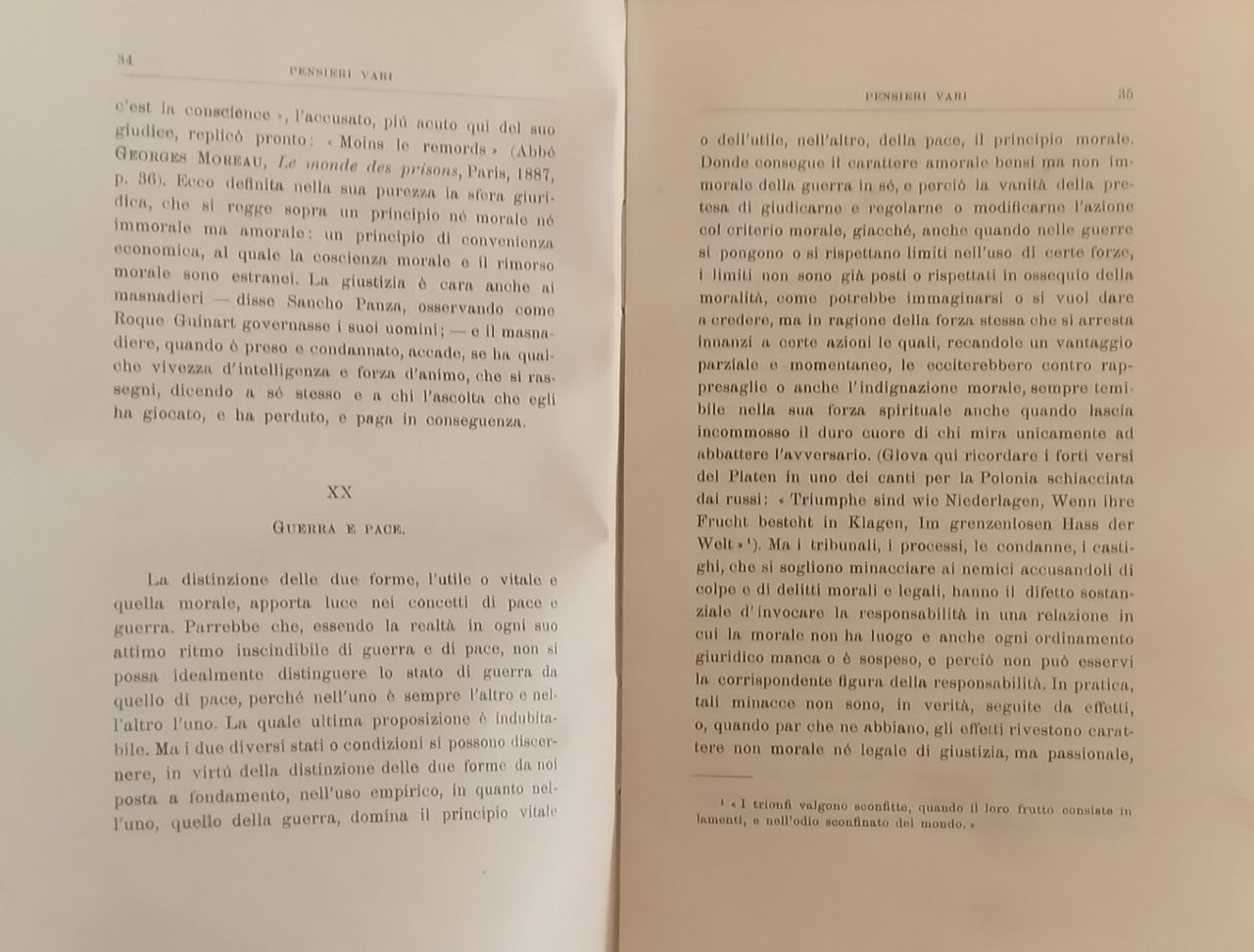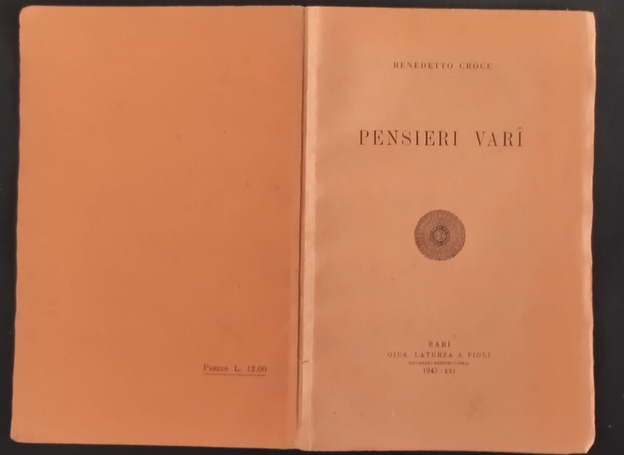 PENSIERI VARI di Benedetto Croce 1943 Laterza Libro I edizione