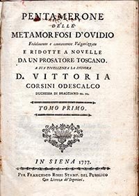 Fedelmente e cautamente volgarizzate e ridotte a novelle da un prosatore toscano. A sua eccellenza la signora D: Vittoria Corsini Odescalco Duchessa di Bracciano ec. Ec.