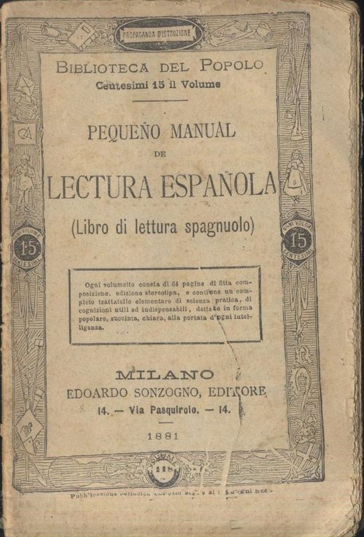 PEQUENO MANUAL DE LECTURA ESPANOLA Libro di lettura spagnola 1881 Sonzogno