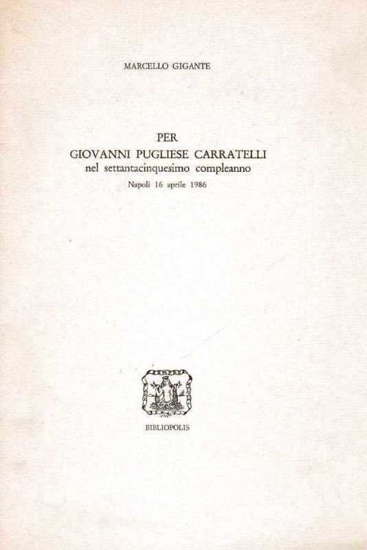 Per Giovanni Pugliese Carratelli nel settantacinquesimo compleanno. Napoli 16 aprile 1986.
