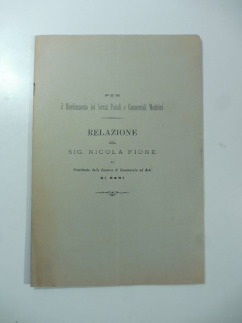 Per il Riordinamento dei Servizi Postali e Commerciali Marittimi - Relazione del Sig.Nicola Fione al Presidente della Camera di Commericio ed Arti di Bari