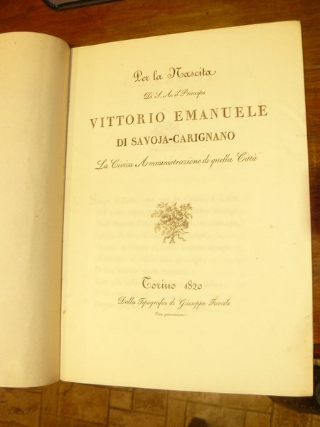 Per la nascita di S. A. il Principe Vittorio Emanuele di Savoia-Carignano. La civica amministrazione di quella Città