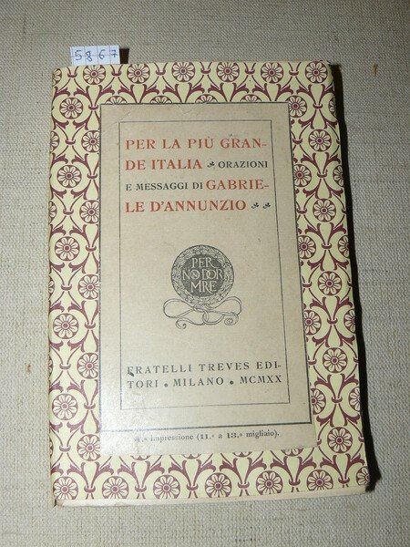 Per la più grande Italia. Orazioni e messaggi di Gabriele D'Annunzio. (Quarta impressione. Dall'11° al 13° migliaio)