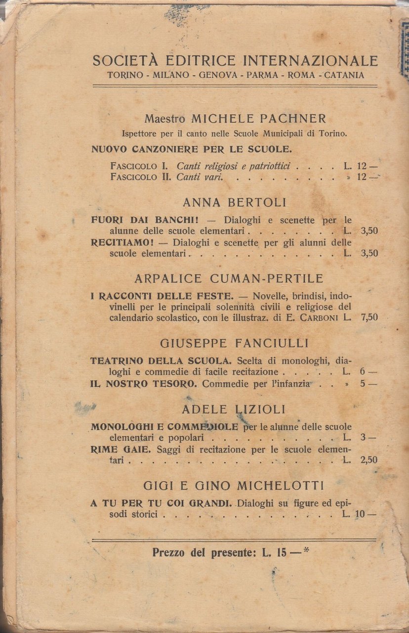 PER LE FESTE SCOLASTICHE canti, monologhi, dialoghi, poesie d'occasione, commediole di Ida Alliaud.