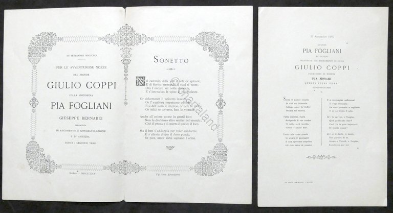 Per le Nozze Giulio Coppi con Pia Fogliani - Sonetti - Modena 1895