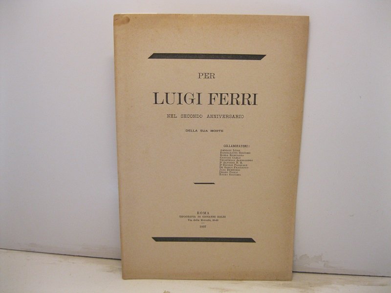 In 8, pp. 20 con piccolo ritratto in b/n raff. Luigi Ferri. Br. ed. Testi di: Luigi Ambrosi, Carlo Cantoni, Pasquale D'Ercole, Alessandro Chiappelli, ecc.