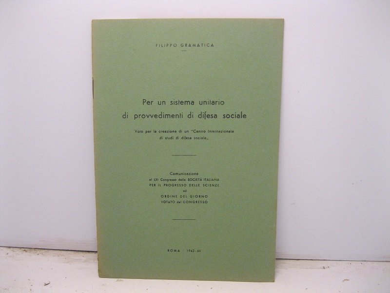 Per un sistema unitario di provvedimenti di difesa sociale. Voto per la creazione di un Centro internazionale di studi di difesa sociale. Comunicazione al LXI Congresso della Societa' Italiana per il Progresso delle Scienze ed ordine del giorno. Voto del Congresso