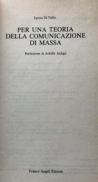 Titolo: Per una teoria della comunicazione di massa