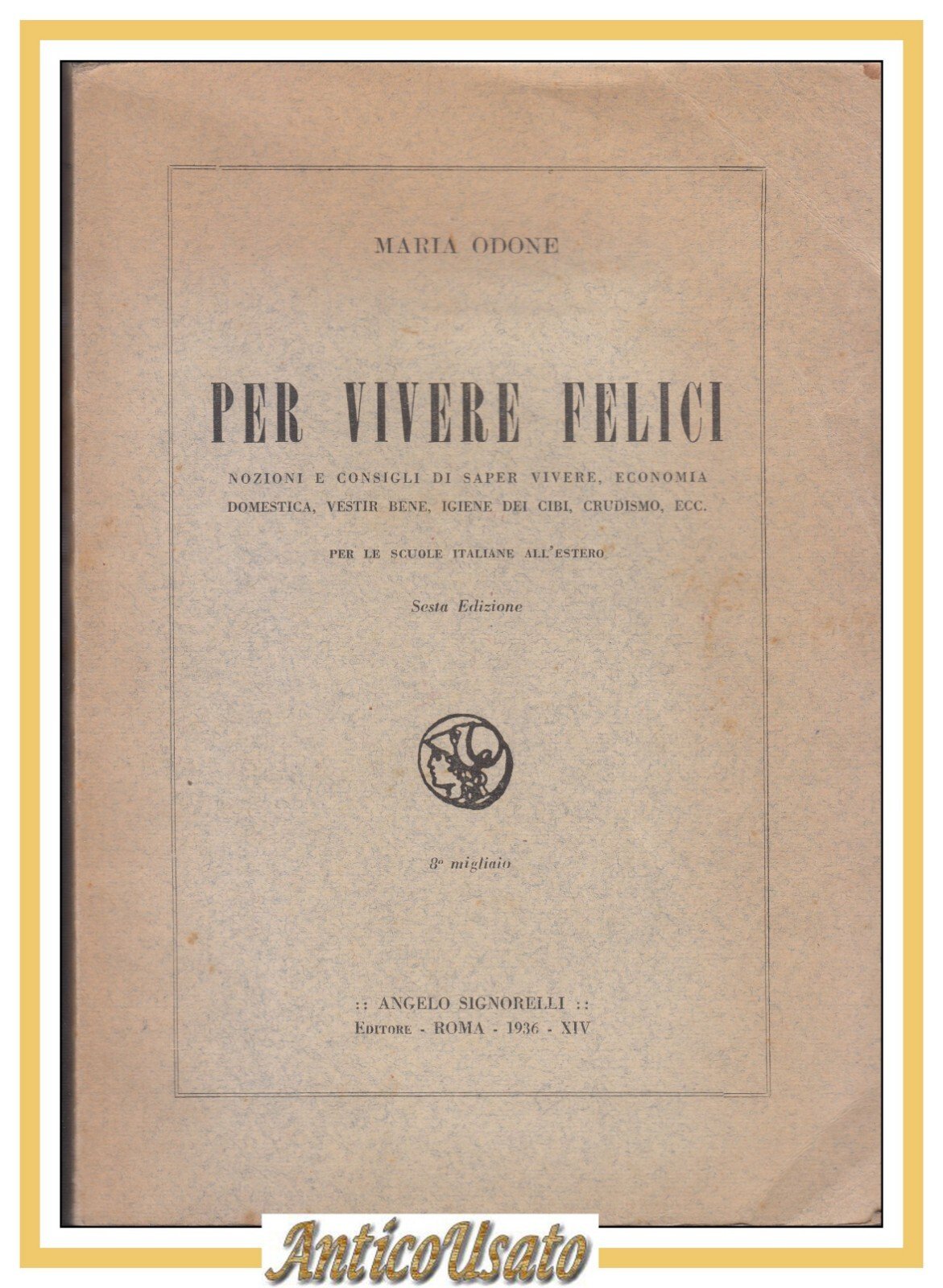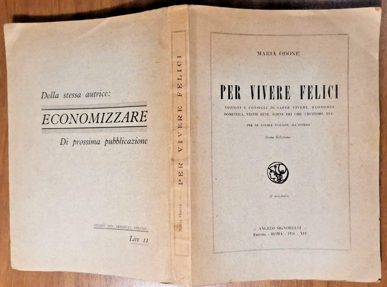 PER VIVERE FELICI di Maria Odone nozioni consigli economia domestica 1936 Libro