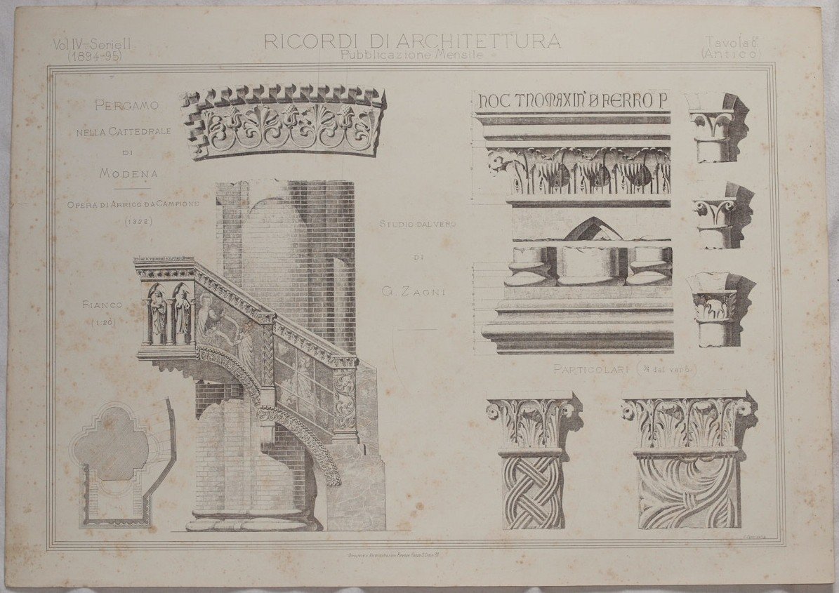 PERGAMO NELLA CATTEDRALE DI MODENA OPERA DI ARRIGO DA CAMPIONE (1322) STUDIO DAL VERO DI G. ZAGNI