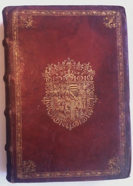 In -folio, due voll. legati assieme; pp. (68), 504, (4); (40), 334, (2). Legatura in marocchino alle armi di don Felipe Ramirez Nuñez de Guzmán de Medina, nervi e titolo al dorso. Questa di Basilea del ’32 è considerata l’ultima e migliore edizione nel Cinquecento in latino delle Genealogie [.] che si deve all’umanista strasburghese Jakob Moltzer. Notevoli le illustrazioni genealogiche a piena pagina in quest’opera che, in vita, diede fama a Boccaccio, i cui lavori in volgare erano considerati una produzione minore.Rilegato con i Saturnalia e il commentario al Somnium Scipionis, le due maggiori opere di Macrobio nell’edizione di Camerario. Numerose illustrazioni nel testo fra cui l’incisione del planisfero macrobiano, diviso in zone climatiche, che costituì per circa un millennio il modello geografico terrestre: nella prima riproduzione a stampa di questa mappa, del 1483, le linee climatiche erano dritte, qui per la prima volta sono curve e rimandano a un modello di terra sferica e non piatta. This Basel 1532’s edition is considered the last and the best latin edition in XVI century of “Genealogie”: it’s due to austrian scholar Jakob Moltzer. The full page genealogic illustrations are remarkable; this work gave a reputation to Boccaccio while he was still alive, and whose works in volgare were then considered a less important production. Bound with the “Saturnalia” and commentary to “Somnium Scipionis”, the most important Macrobio’s works in Camerario edition. Many illustrations in text: between them the macrobian world map, divided in climatical areas, that was for about 1000 years the geografic Earth pattern: in the first printed reproduction of this map, from 1483, the climatical lines were straight, while here they are bent and they suggest a spheric Earth model
